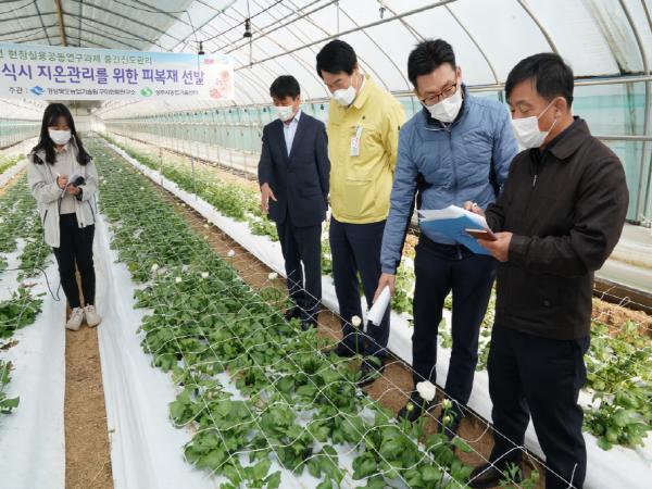 경상북도농업기술원 구미화훼연구소는 3일 상주시 이안면 문창리에서 화훼재배농가, 농업기술센터, 유관기관 관계관 등 40여 명이 참석한 가운데‘라넌큘러스 정식시 지온관리를 위한 피복재 선발’현장 평가 회를 열었다.
