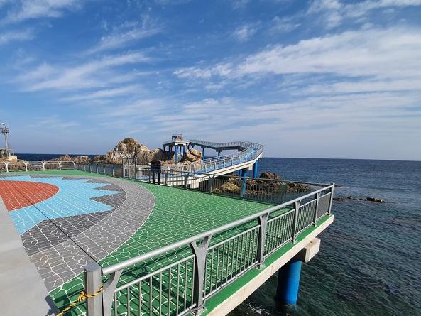 고성군이 거진항 어촌관광체험마을 조성사업의 일환으로 추진하는 백섬경관 해상데크 조성을 완료하고 10월 30일부터 개방한다고 밝혔다.