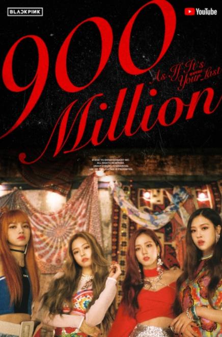 그룹 '블랙핑크(BLACKPINK)'의 '마지막처럼' 뮤직비디오가 9억뷰를 돌파했다.