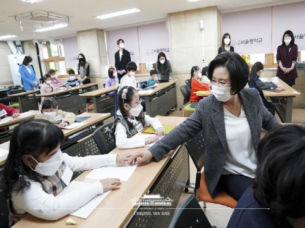 이어진 간담회에서 김정숙 여사는 “서울 맹학교가 청와대 옆에 있다는 이유로 그동안 교통, 소음, 안전 등에서 어려움을 겪어서 미안한 마음이 앞선다”고 말하면서 “문재인 대통령도 서울맹학교와 학생들에게 미안한 마음을 가지고 있고, 꼭 방문하고 싶어 한다”고 전했다.