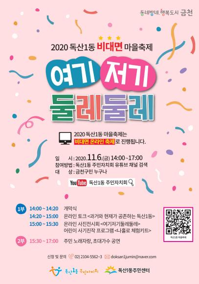 이번 축제는 코로나19 지역 확산 방지를 위해 독산1동 주민자치회 유튜브 채널을 통해 비대면 온라인 생중계로 진행된다.