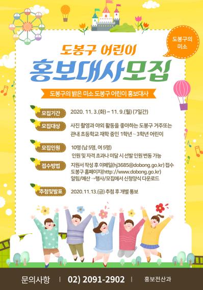 도봉구는 11월 9일까지 아동친화도시 도봉구의 이미지를 제고하기 위해 ‘제3기 도봉구 어린이 홍보대사’를 모집한다