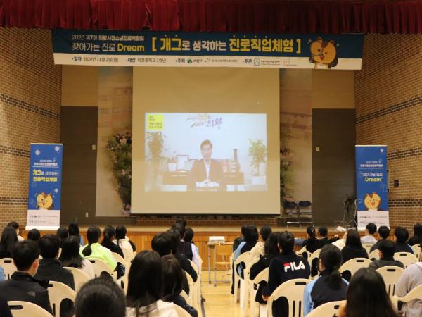 의왕시청소년육성재단 의왕시진로지원센터 ‘꿈터’는 지난 2일과 4일 양일간 덕장중학교와 의왕고등학교 학생 317명을 대상으로 2020 제7회 의왕시청소년진로박람회 ‘찾아가는 진로 Dream’행사를 열었다.