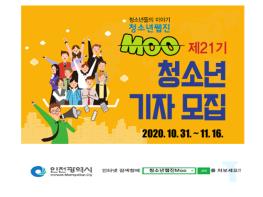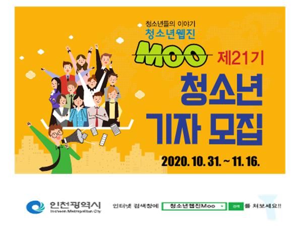 인천광역시는 2021년도 인천시의 청소년을 대표해 시에서 운영하는 “청소년웹진 MOO”에서 활동할 제21기 청소년 기자를 모집한다고 밝혔다.
