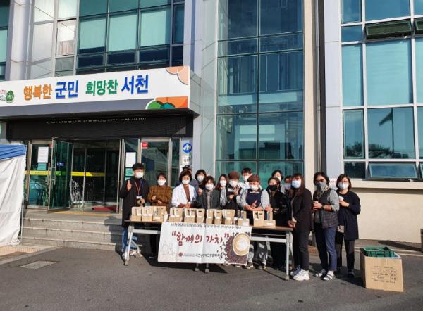 서천군장애인종합복지관 바리스타 과정 장애인 훈련생들이 코로나19 지역 확산 방지를 위해 노력하는 서천군보건소 직원들을 위해 커피 나눔 행사를 펼쳤다.