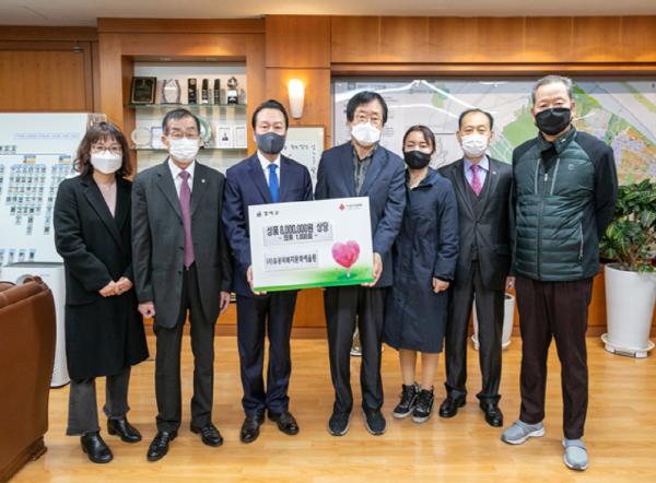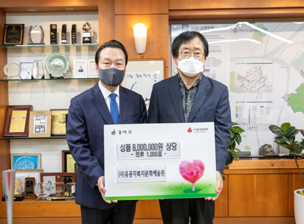 서울특별시 강서구 노현송 구청장은 4일(수) 오전 10시 30분 구청장실에서 (사)유공자 문화복지예술원(이사장 박의열)으로부터 ‘따뜻한 겨울나기 성품’을 전달받았다.