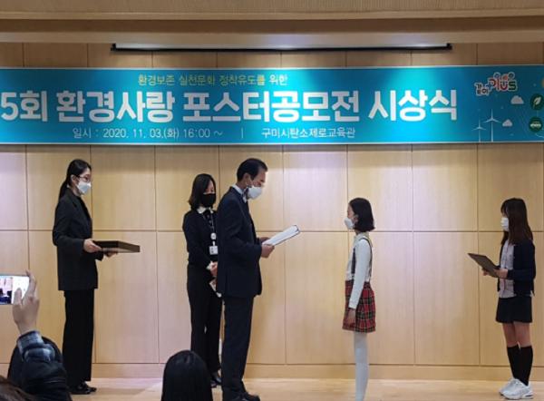 구미시설공단 탄소제로교육관은 11월 3일(화), 탄소제로교육관 다목적홀에서 ‘제5회 환경사랑 포스터 공모전 시상식’을 개최하였다.