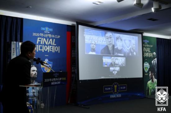 2일 서울 종로구 축구회관에서 2020 하나은행 FA CUP FINAL 화상 미디어데이 행사가 진행됐다. 박문성 해설위원의 사회로 진행된 이번 행사에는 FA컵 결승에 오른 울산과 전북의 감독과 선수가 화상 연결로 행사에 참가해 소감과 각오를 밝혔다.