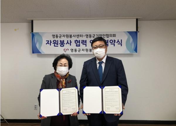 충북 영동군자원봉사센터와 영동군기업인협의회가 지난 3일 관내 기업체들의 자원봉사 활성화를 위한 업무협약을 했다.