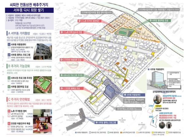 주요사업으로는 복합기능의 생활SOC 시설인 서부동 어울림센터 건립(상생상가, 주민시설, 공공임대주택)과 열린마당 조성, 노후 주거환경 정비와 안전 인프라 확충 사업 등을 추진할 예정이다.