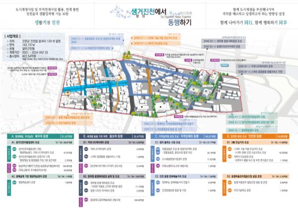 진천읍 도시재생 뉴딜사업의 주요내용은 △생거진천 어울림센터 조성 △참여형 동행 테마광장 조성 △정이 통하는 시장 조성 △진천 동행 문화예술거리 조성 △3無 안심거리 조성 등으로 오는 2021년부터 2024년까지 추진될 예정이다.
