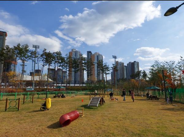시는 안전을 고려해 중·소형견과 대형견 공간을 나눴으며, 그늘막과 음수전, 보호 펜스, 오르기·뛰어넘기·지그재그 등 다양한 놀이시설을 갖췄다.