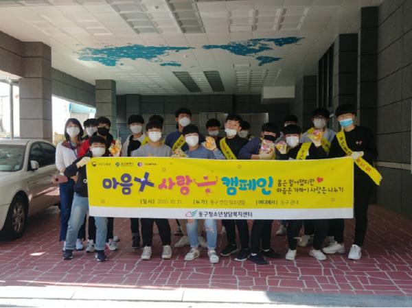 부산시 동구 청소년상담복지센터의 동구지역 또래상담자(청소년) 모임인 ‘솔리언 또래상담연합회(또래웃음)’는 지난 10월 31일 청소년상담복지센터 일대에서 코로나19 극복을 위하여 ‘마음은 가까이, 사랑은 나누기’ 캠페인 활동을 진행했다.
