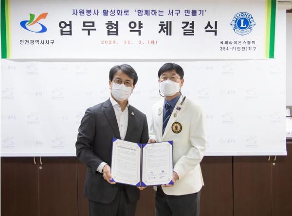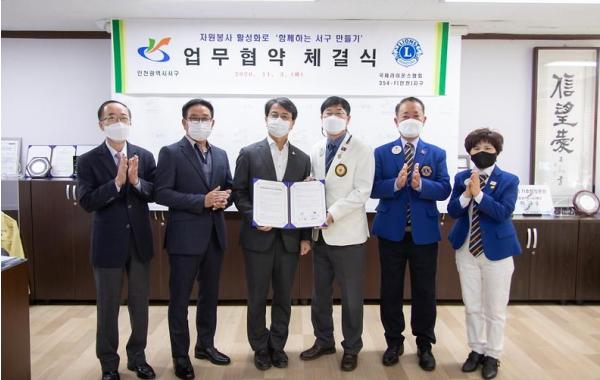 인천시 서구는 지난 2일 국제라이온스협회 354-F(인천)지구 제8지역과 업무협약을 맺고 서구의 자원봉사 활성화에 힘을 모으기로 했다.