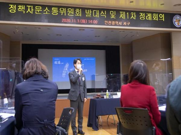 ‘정책자문소통위원회’는 서구의 핵심 정책 및 현안사항과 관련, 분야별 위원들의 지속적인 소통에 기반해 합리적인 해결방안을 모색해나가고자 출범했다. 총 8개 분과(복지분과, 교육분과, 환경안전분과, 경제기업분과, 문화체육분과, 주민자치소통분과, 스마트에코4차산업분과, 청년미래분과)로 나뉘며 39명 위원으로 구성됐다.