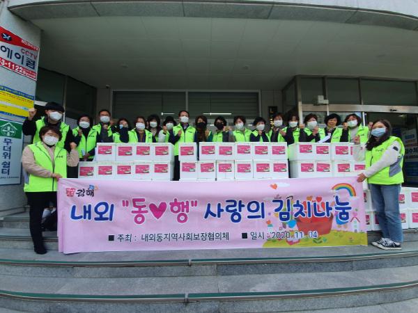 김해시 내외동 지역사회보장협의체(민간위원장 손정남·공공위원장 류정옥)는 지난 11월4일 내외동행정복지센터에서 배추김치(4kg) 100통을 지역사회 취약계층에게 전달하는 ‘사랑의 김치나눔 행사’를 가졌다.