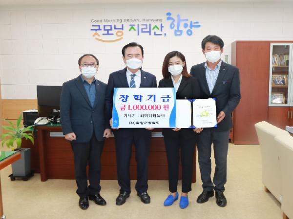 함양군은 4일 네팔 출신 결혼이민여성 라마다와돌마(휴천면?)씨가 함양군청을 방문해 (사)함양군장학회에 장학금 100만원을 기탁했다고 밝혔다.