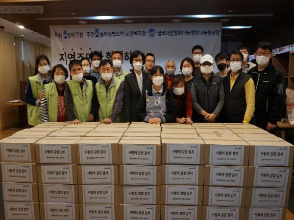 송파구가 구립 노인복지관 송파실벗뜨락을 통해 11월 3일부터 4일까지 ‘지역주민과 함께하는 김장김치 나눔행사’를 개최하였다.