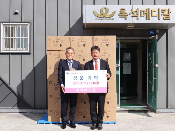 진주 촉석메디칼은 경로당 이용 어르신들의 코로나19 감염 예방을 위하여 지난 4일 진주시 복지재단(이사장 이성갑)에 마스크 11만 2000개(환가액 4144만원)를 기부했다.