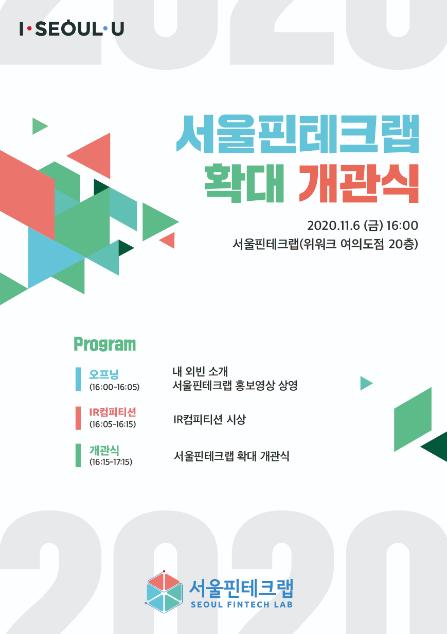 서울시는 11월 6일(금)「서울핀테크랩 확대 개관식」을 진행했다. 김의승 경제정책실장, 이용우 국회의원, 최훈 금융위 상임위원, 김근익 금융감독원 수석부원장, 핀테크랩 입주기업을 비롯한 많은 관계자가 참석하여 서울핀테크랩 확대 개관을 축하하며 입주기업의 성공적 안착과 성장을 기원했다.