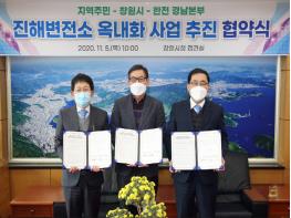 창원시는 5일 시청 접견실에서 유현호 한전 경남본부장, 진해구 자은동 주민대표와 진해변전소 옥내화 사업의 원활한 추진을 위해 상호 협력 상생협약을 체결했다고 밝혔다.