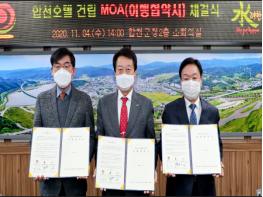 합천군과 ㈜씨티포인트(대표 박성수), JP&E그룹(주)(대표 심재우)은 11월 4일 합천군청 2층 소회의실에서 문준희 군수, 박성수 대표, 심재우 대표와 관계자 등 10여명이 참석한 가운데 민간투자사업으로 ‘합천호텔건립’을 위한 이행협약을 체결했다.