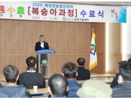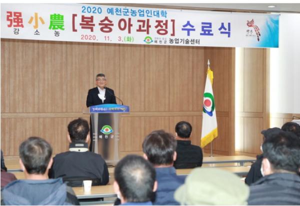 예천군농업기술센터는 3일 오후 6시 농업인회관에서 김학동 군수를 비롯한 교육생 30여명이 참석한 가운데 예천군농업인대학 강소농(强小農) 복숭아과정 수료식을 개최했다.