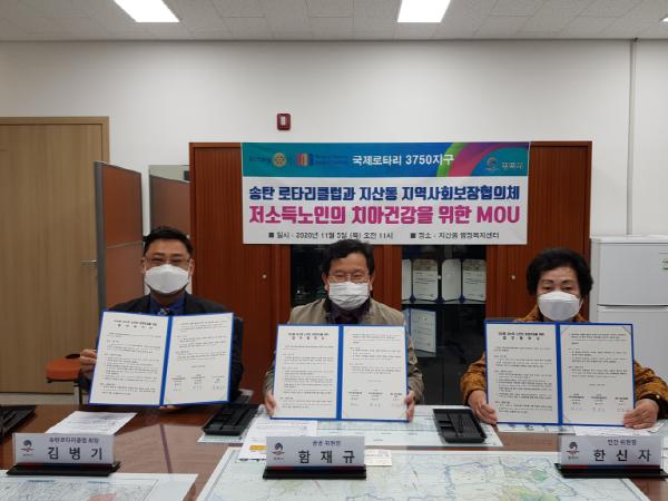 평택시 지산동 지역사회보장협의체는 5일 지산동장실에서 송탄로타리클럽(회장 김병기)과 지산동 관내 저소득 노인의 구강검진 및 치료사업 추진을 위한 업무협약을 체결했다.