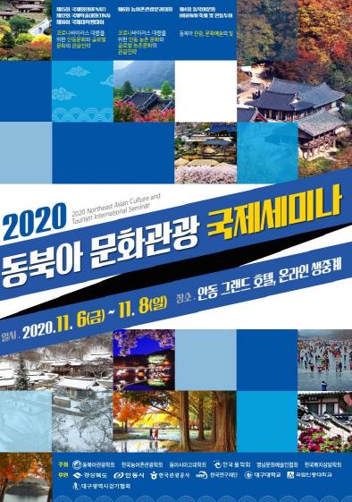 경상북도, 안동시가 주최하고 (사단법인)동북아관광학회가 주관하는 「2020 동북아 문화관광 국제세미나」가 오는 11월 6일(금)부터 11월 8일(일)까지 3일간 안동그랜드 호텔에서 개최된다.