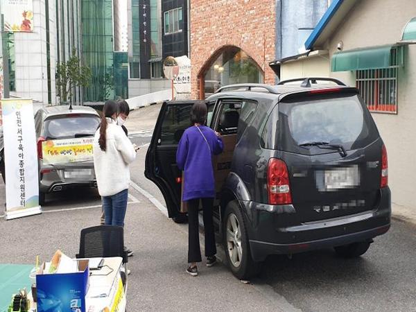 인천시 서구 육아종합지원센터는 지난달 31일 코로나19 감염 우려로 가정에서 생활하고 있는 영유아와 부모님을 위해 ‘드라이브스루’ 방식을 활용해 ‘뛰뛰빵빵 놀이버스 만들기’ 놀이 키트 70개를 지원했다고 5일 밝혔다.