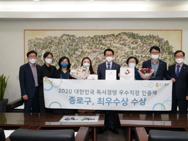 서울특별시 종로구가 「제7회 독서경영 우수직장 인증」 심사 결과 ‘최우수상’을 수상하는 쾌거를 거뒀다.