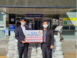 영종동 지역사회보장협의체 최태근 민간위원장은 지난 4일 영종동에 10kg 백미 160포(460만원 상당)를 기탁했다.