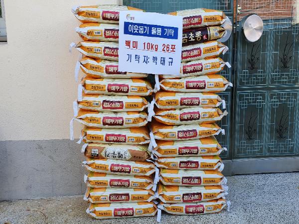 밀양시 삼랑진읍 안태마을이 고향인 박태규(부산시 연제구, 54세, 남)씨가 5일 밀양시 삼랑진읍행정복지센터에 백미 260kg(10kg,26포)을 기탁했다.