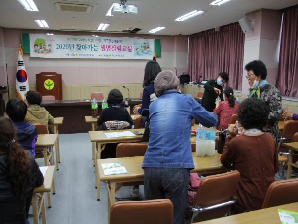 거창군새마을회는 지난 10월 23일부터 11월 5일까지 4회에 걸쳐 거창군새마을회관 회의실에서 새마을남녀지도자와 지역주민 100여 명이 참석한 가운데 ‘찾아가는 생명살림교실’교육을 실시했다.