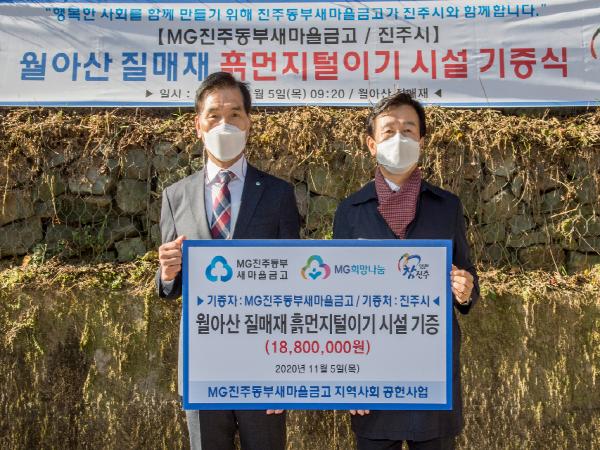 진주시는 5일 금산면 질매재 입구에서 진주동부새마을금고(이사장 강성근)와 월아산 등산로 먼지털이기 기증식을 가졌다.