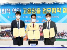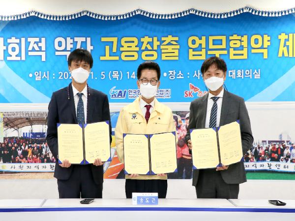 사천시와 한국항공우주산업(주), SK주식회사 C&C는 11월 5일 오후 2시 시청 대회의실에서 「사회적 약자 고용창출」에 대한 업무협약을 체결했다.