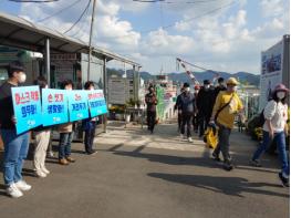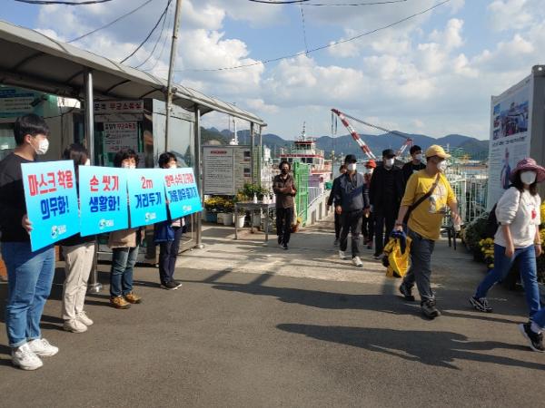 시 관광과 직원, 문화관광해설사 등은 돝섬 선착장, 진해루 등 관내 주요 관광지에서 ‘마스크 착용 의무화’, ‘손 씻기 생활화’, ‘2m 거리두기’ 등 코로나19 예방수칙이 적힌 피켓을 들고 동참해 줄 것을 호소했다.