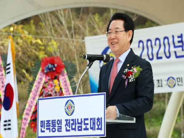 김영록 전라남도지사는 “평화통일의 길에 앞장서온 민족통일협의회 여러분께 감사드린다”며 “전라남도도 지난 20년간 꾸준히 쌓아온 남북교류 경험을 바탕으로 ‘청정 전남, 블루이코노미’와 연계한 남북교류 협력사업을 적극 추진하겠다”고 말했다.