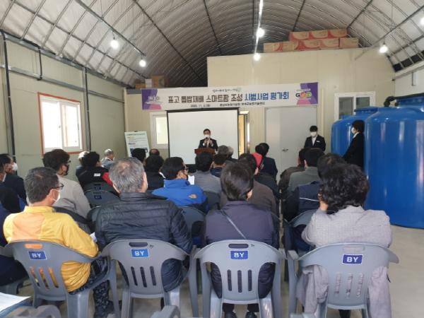 부여군농업기술센터는 지난 2일 표고버섯 재배 농업인, 충남도농업기술원 관계자 등 50여명이 참석한 가운데 홍산면 최병국 농가(버섯 뜰농장) 시범포장에서 표고 톱밥재배 스마트팜 조성 시범사업 평가회를 개최했다.