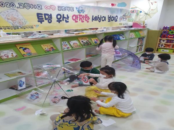 교통장애인협회 하남시지회는 지난 4월부터 어린이집, 유치원, 초등학교 저학년 등을 대상으로 찾아가는 눈높이 교육을 진행, 투명우산을 만들며 교통사고 예방 지식을 전달하고 교통안전에 미숙한 어린이들에게 빗길 교통사고의 경각심을 높이고 있다.