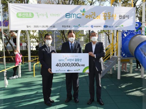부산시 영도구는 2020년 11월 5일 「부산도시공사」와 협력기관인 「초록우산어린이재단 부산지역본부」와 함께 ‘중리어린이공원 일원 BMC 꿈동산 놀이터 개·보수공사’ 완공식을 개최하였다.