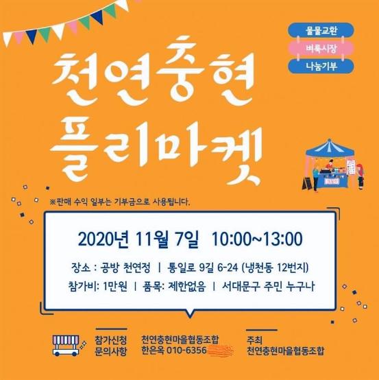 서대문구 천연동 충현동 일대 도시재생 마을관리사업의 일환으로 자원순환의 가치를 공유하고 나눔의 문화를 확산하는 ‘천연충현 플리마켓’이 열린다.