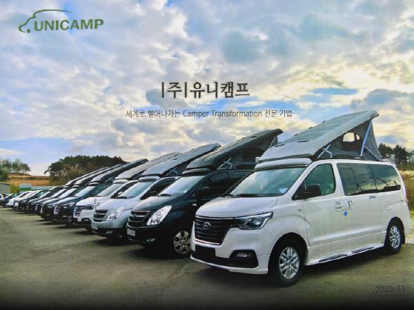 중소형 승합차를 활용해 캠핑카, 이동업무차 등을 생산하는 (주)유니캠프는 2019년 기준 130억원의 매출과 34%의 시장 점유율로 최근 코로나19의 언택트 문화와 맞물려‘차박’이 여행대세로 떠오르면서 급속한 성장세를 보이고 있다.