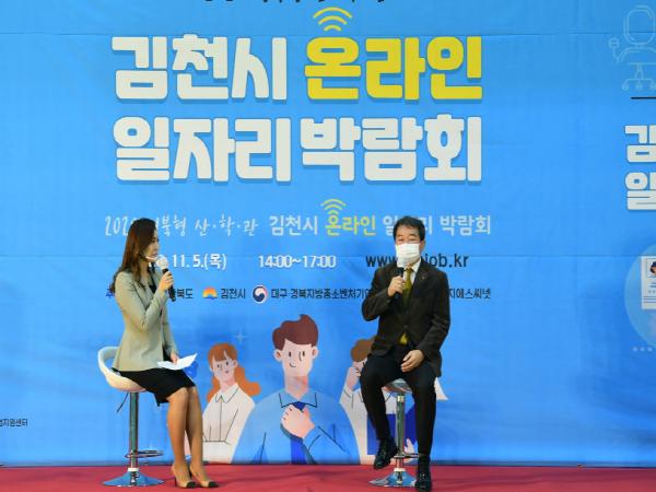 김천시는 경상북도와 김천시, 대구·경북지방중소벤처기업청이 주최한 「2020년 경북형 산학관 김천시 온라인 일자리박람회」를 11월 5일 김천시 국민체육센터에서 개최했다.