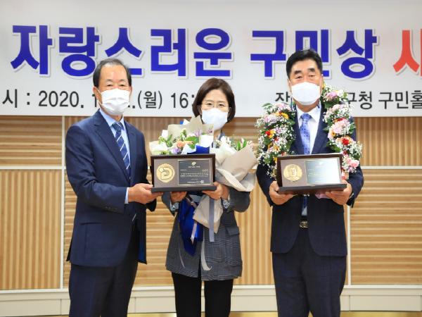 이번 자랑스런 구민상은 지난 6월부터 8월까지 60일 동안 지역 내 동 주민센터·기관·단체로부터 지역 사회 발전에 공로가 많은 후보자를 추천받아 사실조사와 선정위원회 심의를 거쳐 지역발전부문, 사회봉사부문에 각 1명씩 수상자를 최종 선정했다.