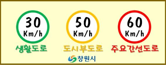 창원시는 도로교통법 시행규칙 개정과 ’안전속도 5030‘ 정책에 따라 11월부터 시내 일반도로의 제한속도를 60km/h이하로 전면 조정 작업에 들어간다고 5일 밝혔다.