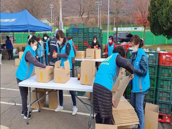 이번 김장 나누기 활동은 코로나19 확산 예방 차원으로 봉사단체 활동을 하루 3타임으로 나누어 타임별 자원봉사자 50여 명이 참여해 총 150여 명이 참여하여 진행되었으며 절임김치와 속을 버무리는 ‘김장’을 하지 않고 배추김치 완제품을 구입 후 포장 활동으로 각 읍·면 및 봉사단체의 대상자 약 1100세대에게 배부되었다.