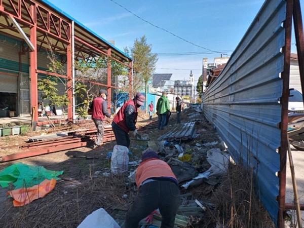 6일 인화동에 따르면 희망일자리사업 근로자들이 지난 한 달여간 폐선 부지 인근에 불법으로 무단투기 되었던 대형 폐기물, 영농폐기물, 생활 쓰레기 등을 집중 수거 처리했다.