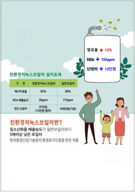 김순자 환경과장은 “저녹스(친환경)보일러는 일반보일러에 비해 미세먼지를 유발하는 오염물질이 적게 나오고 에너지 효율이 높아 난방비(연료비)를 절감하는 효과가 크다”며 “생활속 대기질 개선에 동참할 수 있는 이번사업에 시민여러분들의 많은 관심과 신청을 바란다”고 말했다.