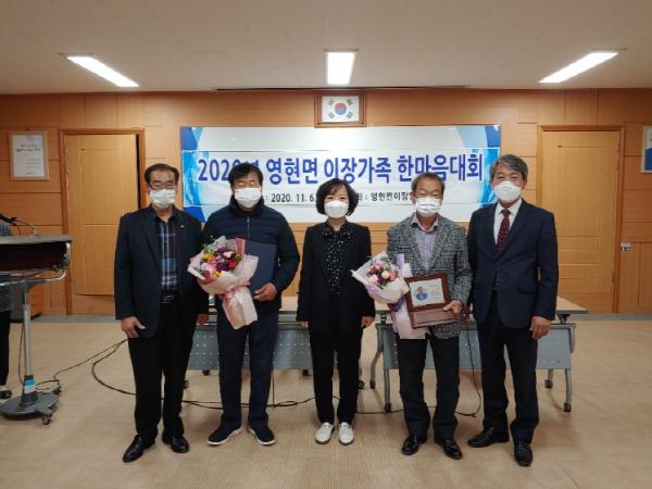 이장 및 이장가족, 영현면 기관단체장 등 80여명이 참석한 가운데 영현면사무소 2층에서 모범이장 표창패 수여식을 가졌으며, 심유산 연화2마을 이장이 도지사 표창을, 이형규 대촌마을 이장이 군수 표창을, 윤기도 봉림마을 이장이 적십자사회장 표창을 받았다.